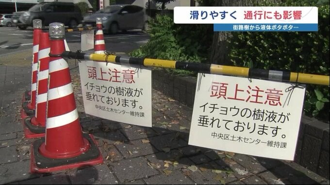ココ気になる!生活情報 街に漂う「カブトムシの虫かごみたいな臭い」 原因は街路樹のイチョウに起きた「非常に珍しい状況」 熊本 To view this video please enable JavaScript, and consider upgrading to a web browser that supports HTML5 video 2025年9月2日(火) 19:00 国内 熊本市の中心市街地で、街路樹のイチョウから、路面を濡らすほどの液体が垂れているのが見つかりました。 通行に影響が出て、周辺には独特の臭いが漂っています。