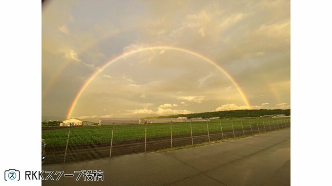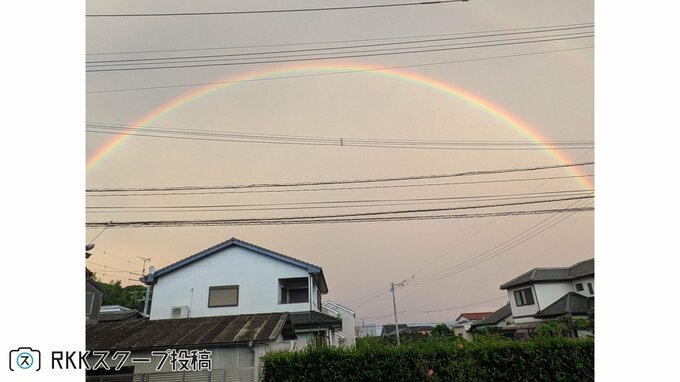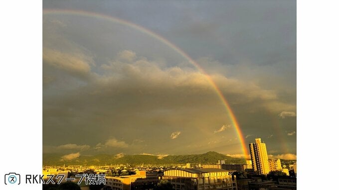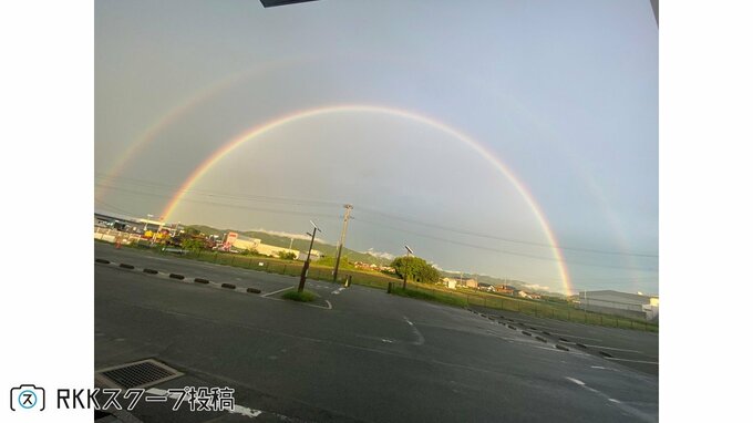 「私も見えた!」〝ダブルレインボー〟視聴者投稿が続々! 2025年9月5日(金) 10:40 国内 天気 昨日(9月4日)午後6時20分ごろに、熊本市近郊で二重の虹「ダブルレインボー」が発生し、多くの市民が撮影に成功しました。 RKKスクープ投稿にも続々と寄せられました。 熊本市東区で「はやく過ごしやすい気候になって!」 二重の虹! 熊本市東区で「しばらく見とれて動けませんでした」 浮島神社(嘉島町) 水面に映る虹 御船町で「幸せな気持ちになりました!」 虹! 福岡県みやま市でも見えました ダブルレインボー! 熊本城の天守閣から伸びる虹「おかげでいいことありました!」 ▼見えたらラッキー?二重の虹「ダブルレインボー」が熊本市の空に! なぜ見える?気象予報士が解説