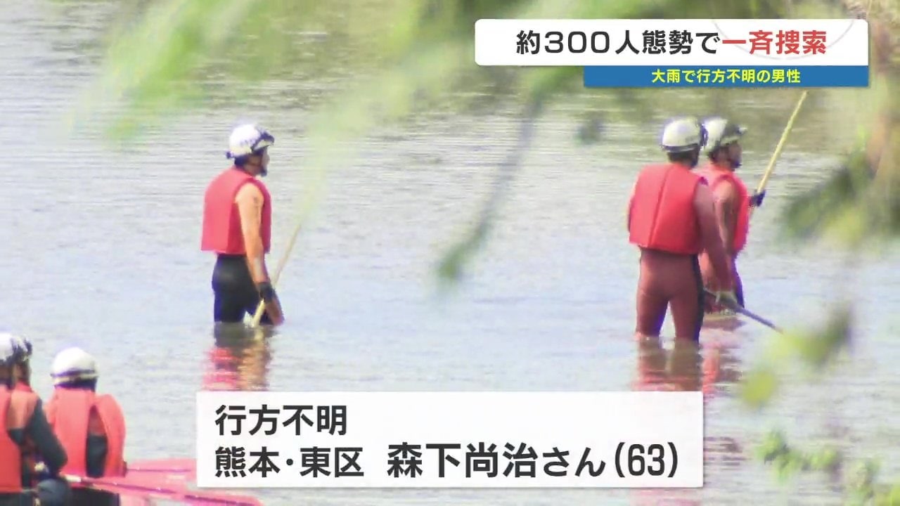 森下さんは8月11日、熊本市北区貢町で車ごと井芹川に流されたとみられていて、下流では森下さんの軽乗用車が見つかっています。