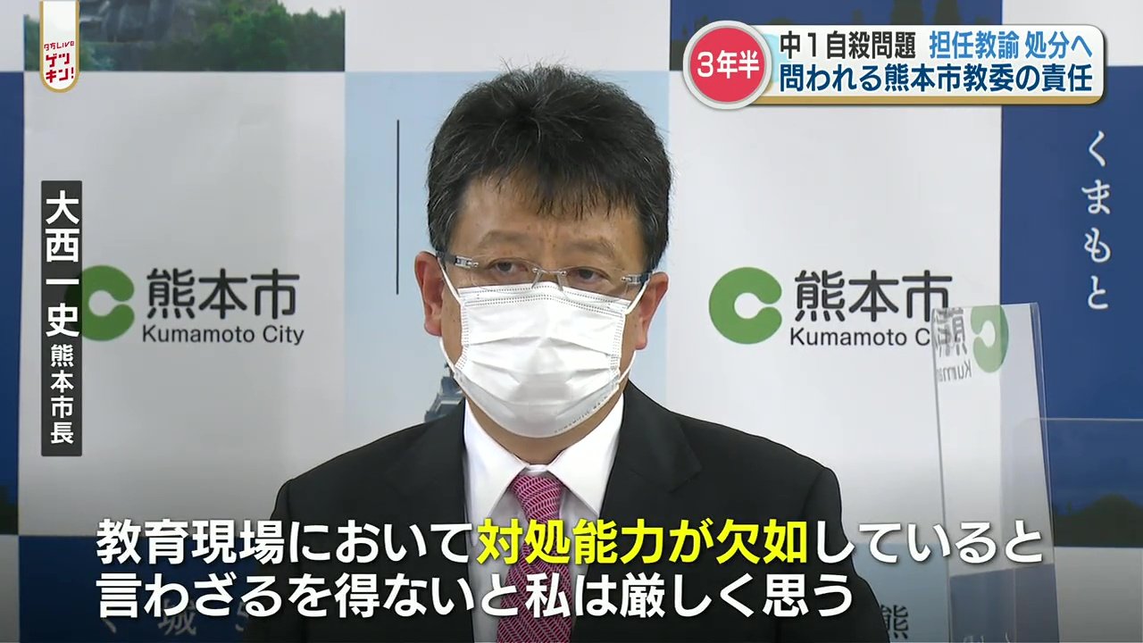 市教委のこれまでの対応を、熊本市の大西市長は強い言葉で非難。