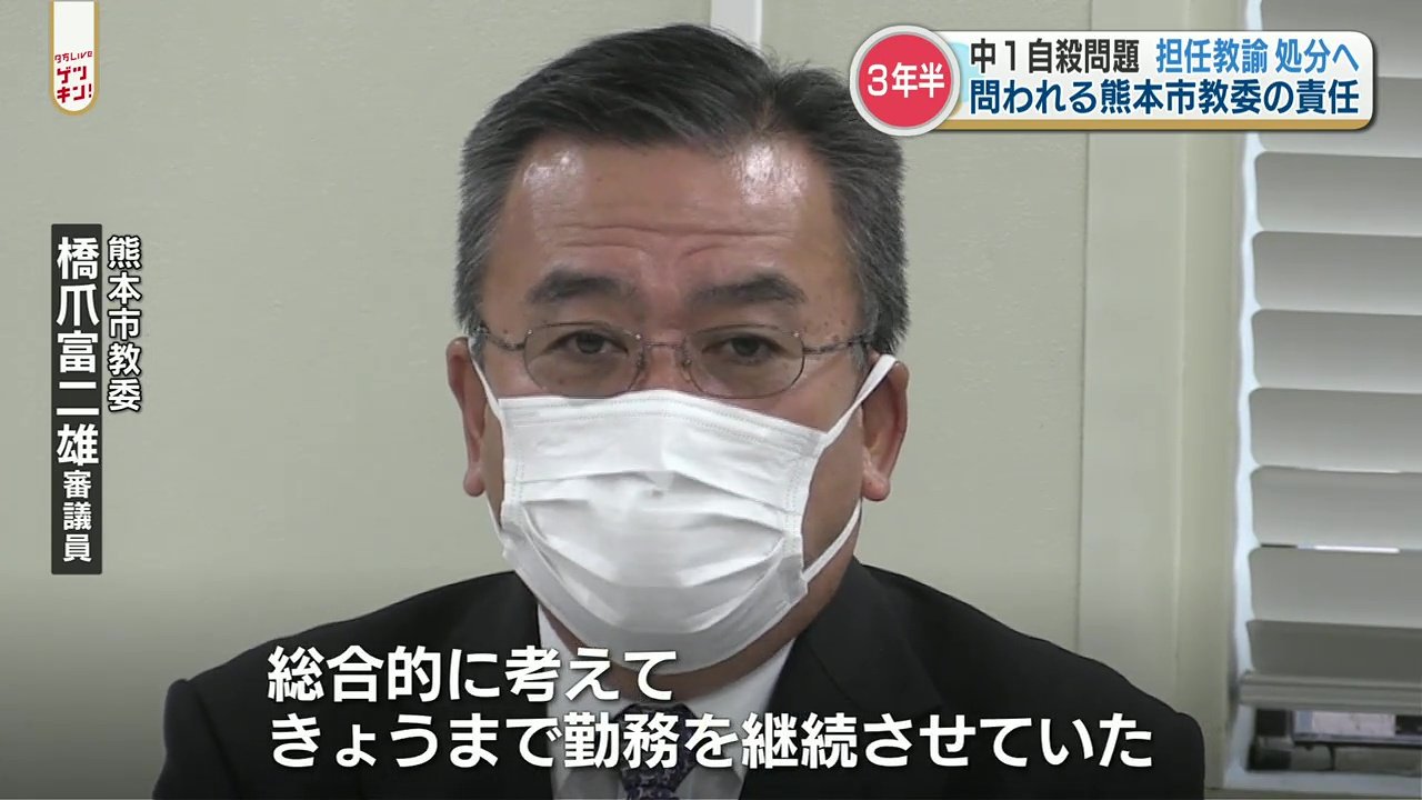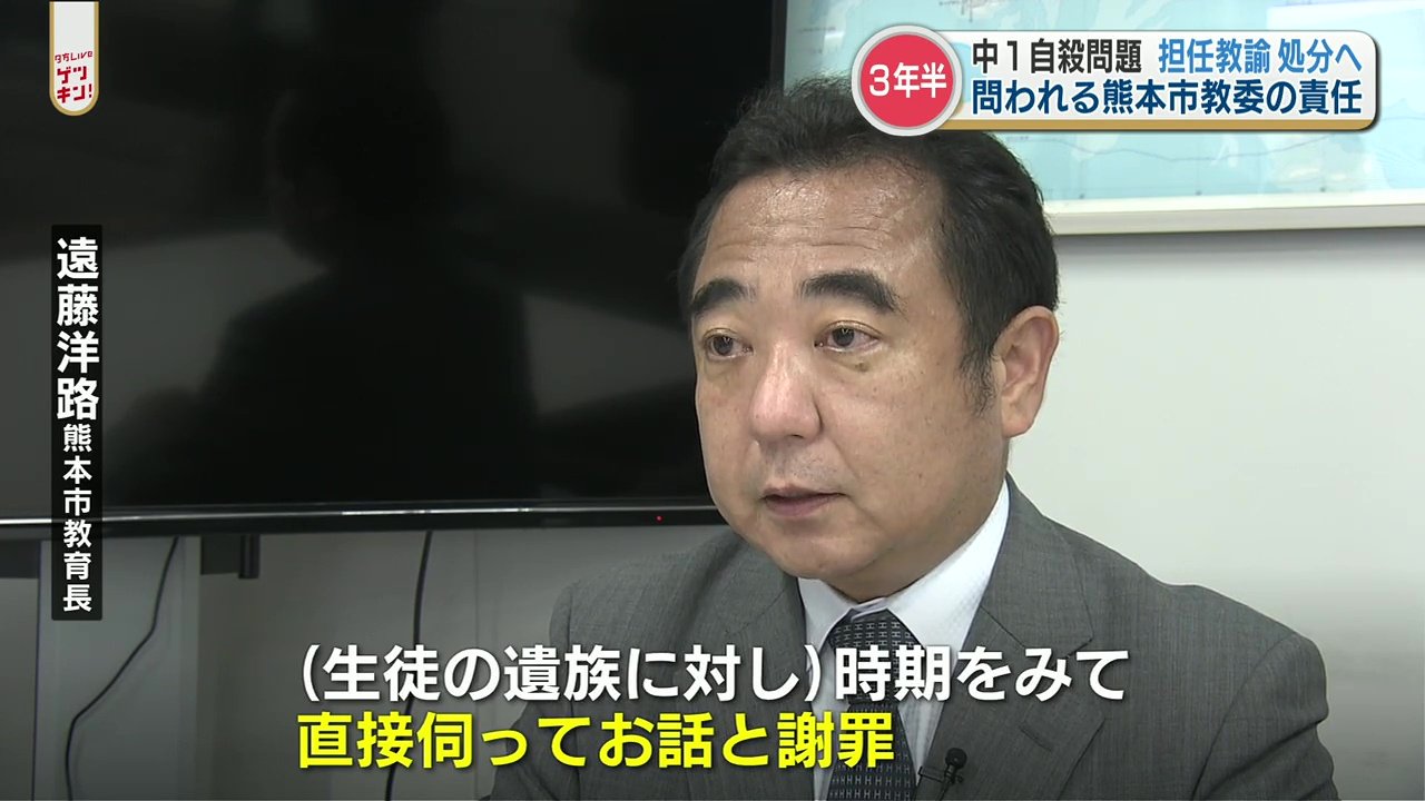 小学校時代の担任教諭の不適切な指導が自殺に影響した可能性があるというものでした。これを受け、教育現場のトップ、熊本市の遠藤 洋路(えんどう ひろみち)教育長は。