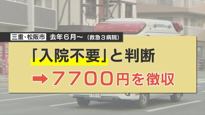 三重県松阪市でも、去年6月から救急医療を担う市内3つの病院で、入院が不要と判断された人から「選定療養費」を徴収する取り組みをはじめています。ここでは、入院が不要と病院が判断した場合、患者に7700円の費用負担を求めています。
