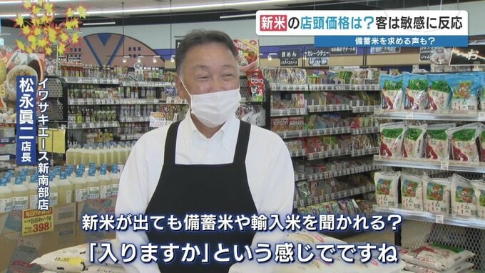 イワサキエース新南部店 松永眞二店長「まだ新米も出たてなので、これから収穫が増えてくると価格も変わってくるとは思いますけどね。金額的には4000円台前半くらいで今年は流れていくのではないかと予測している」