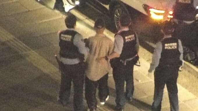 また、その後取り押さえられた人物が警察に連行されている様子も確認できました。