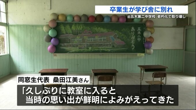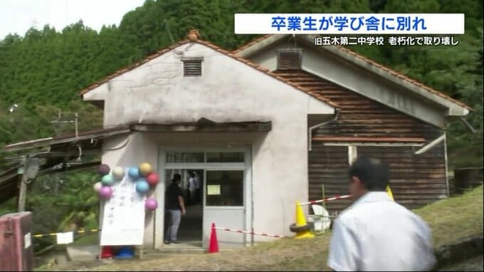 30年前に廃校となった熊本県五木村の中学校の校舎が取り壊されることになり、同窓生たちが集まり、お別れ会が開かれました。