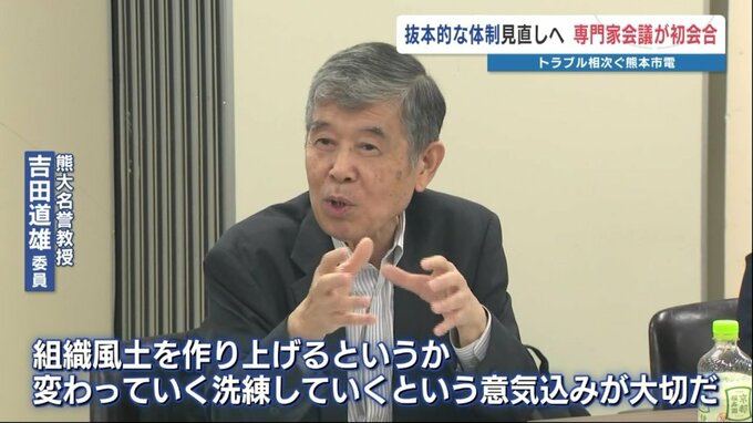 「熊本市電」再生へ 専門家9人が運営に意見「正規職員化はモチベーション向上に」「変わる意気込みが重要」 2025年10月22日(水) 19:08 国内 重大な事故やインシデントが相次ぐ路面電車の熊本市電について、抜本的に組織体制を見直し安全な運行につなげるため、専門家会議の初会合が開かれました。熊本市電では、今年3月に起きた乗員乗客15人が重軽傷を負…