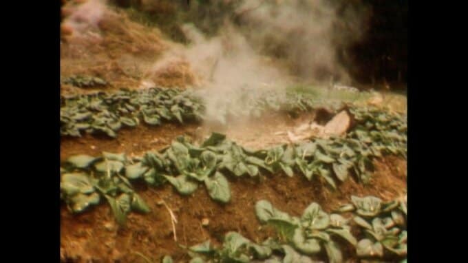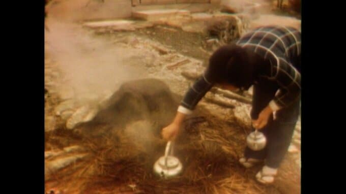 「さて石油不足から、灯油、プロパンガスの不足、そして値上げと最近の世相はきびしさを増していますが、プロパンガス不足などどこ吹く風で、恵まれた天然の地熱で、寒さ知らずの別天地生活を送っているところが、熊本県の小国町にあります。きょうはこの小国町岳の湯地区をご紹介しましょう。