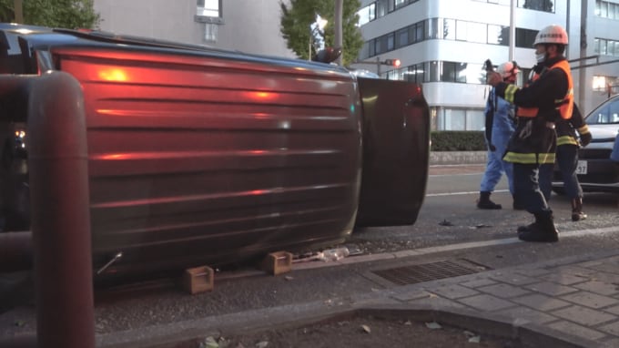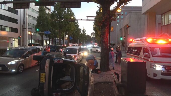 11月21日午後5時すぎ、熊本市中央区の市道で車同士が衝突し、1台が横転しました。けが人の有無は確認中です。※11月21日午後6時15分現在