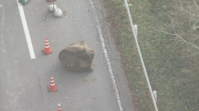 すぐ近くに落ちた別の岩に軽乗用車が衝突しましたが、乗っていた50代の女性に けがはありませんでした。