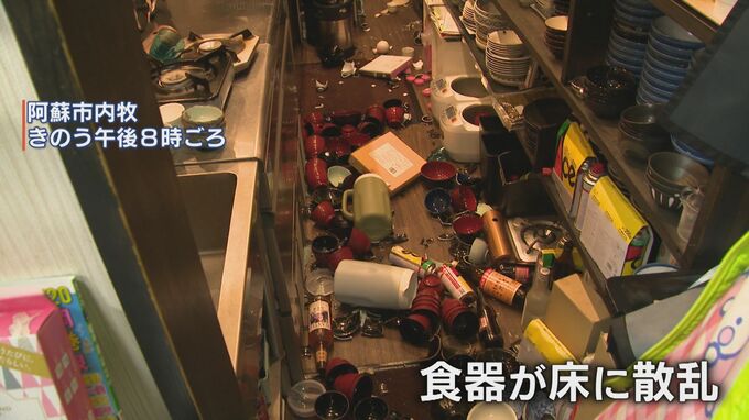 飲食店の棚からは、食器などが落ち、床に散乱しました。