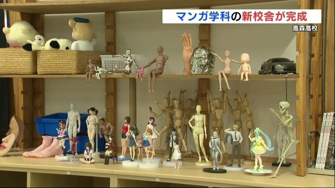 これまでの校舎に増設する形で建てられた2階建ての新校舎には、実習室などが設置され、マンガやイラストなど専門的な授業を受けられる環境が整備されています。