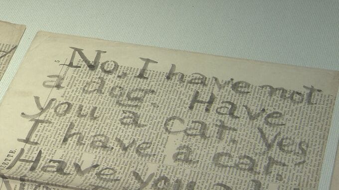 また、自宅で長男に英語を教えていた時に毎日使ったとされる「新聞に英単語を書いた教材」も残っています。