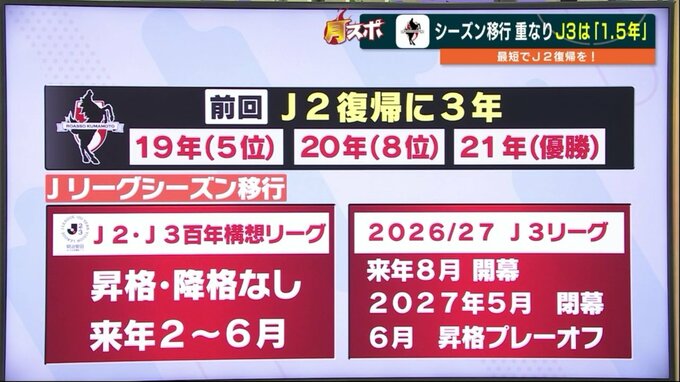 今後、早くJ2に復帰したいところですが、Jリーグの改革に伴い、来年2月からは『明治安田J2・J3 百年構想リーグ』という特別リーグが開催されます。