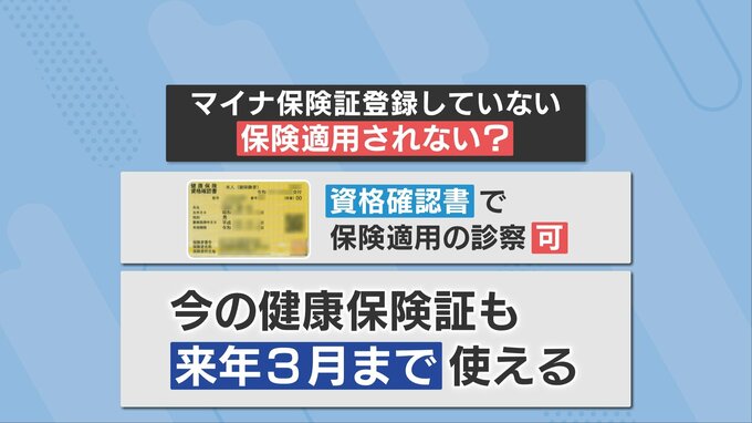 登録できてる?健康保険証「明日から」マイナ保険証へ 登録状況はスマホで確認 2025年12月1日(月) 19:34 国内 登録していないけれど…保険適用はどうなる? 「資格確認書」を健康保険証の代わりにすることで、保険適用の診察が可能です。 現在の健康保険証も、2026年3月までは使用できるということです。