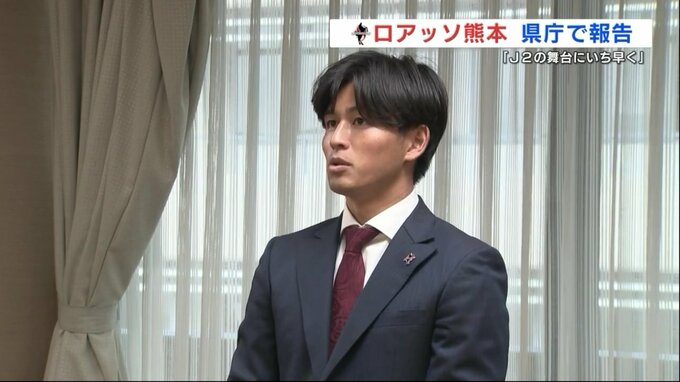 サッカー明治安田J2リーグの今シーズンを戦い抜いたロアッソ熊本の選手たちが熊本県庁を訪れ、竹内副知事に結果を報告しました。