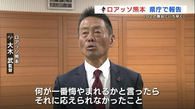 ロアッソ熊本 大木武監督「感謝しかない。何が一番悔やまれるかと言ったら、それに応えられなかったこと。J2に残して辞めたいという気持ちが強かった」