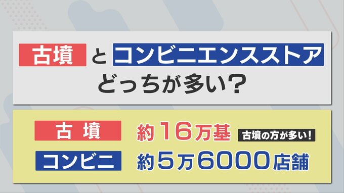 文化庁よりますと、全国にある古墳は約16万基で、実は、コンビニエンスストア(約5万6000店舗 ※帝国データバンクより)の3倍近くもあるんです。