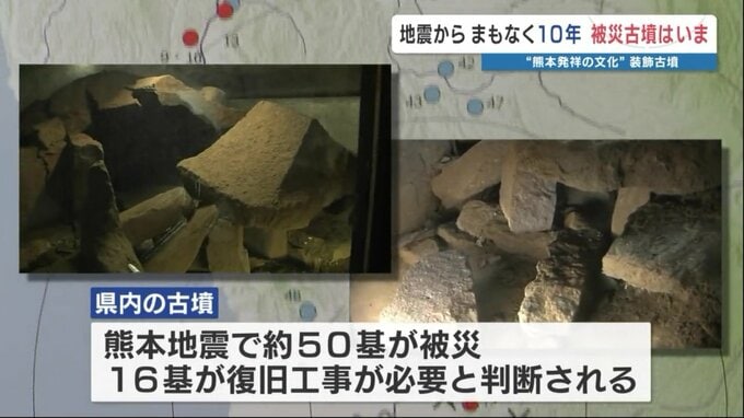 熊本地震では、江田船山古墳のように国や県、市が指定する古墳50基ほどが被災し、このうち16基が復旧工事が必要と判断されました。