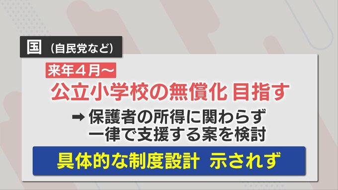 国は来年4月から公立小学校の給食費無償化を目指していて、保護者の所得にかかわらず一律で支援する案を検討しています。