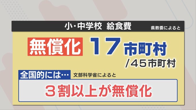 熊本県教育委員会などによりますと、県内では45市町村のうち、既に宇城市や菊陽町など17の市町村が小・中学校の給食費を無償化しています。