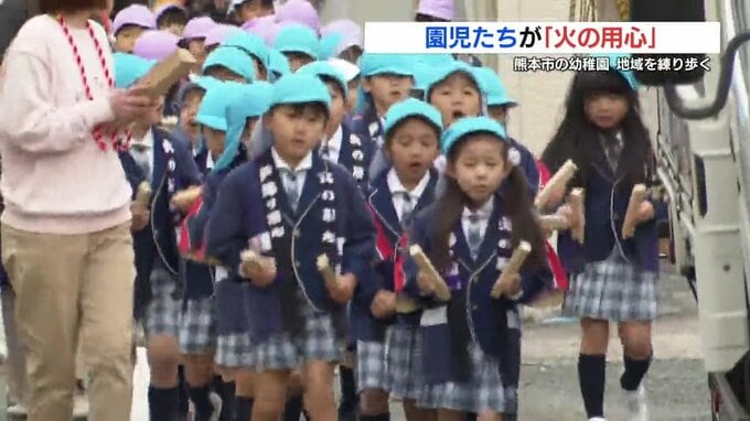 熊本市中央区で「火の用心」を呼びかけたのは、ときわ幼稚園の園児69人です。