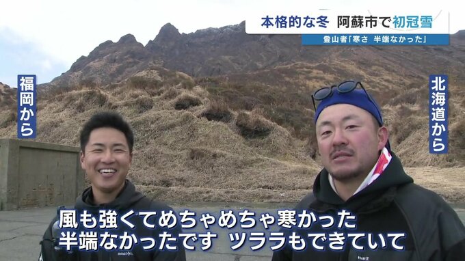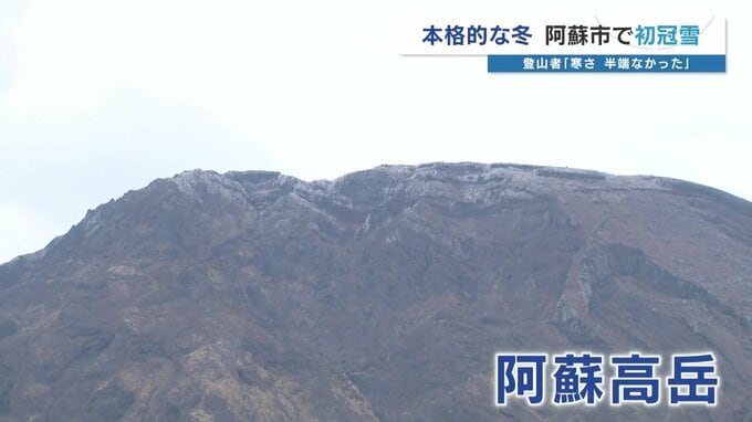 阿蘇市は、3日午後1時半ごろに初冠雪を観測したと発表しました。阿蘇高岳の初冠雪は平年より13日遅く去年より5日遅い観測です。