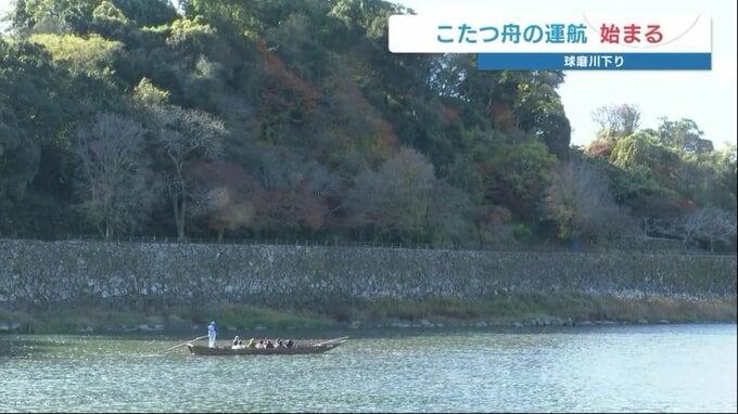 熊本県人吉市の球磨川下りで、冬の風物詩「こたつ舟」の運航が始まりました。