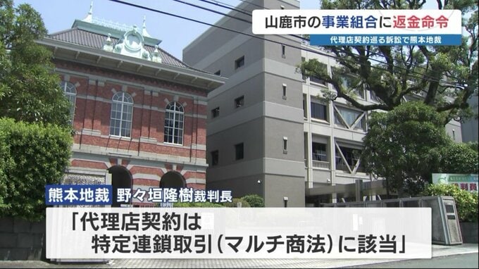 熊本地裁の野々垣隆樹裁判長は、代理店契約について「特定連鎖取引(マルチ商法)に該当する」として、原告のうち8人が支払った権利金、合わせて約3300万円の返還を男性に命じました。