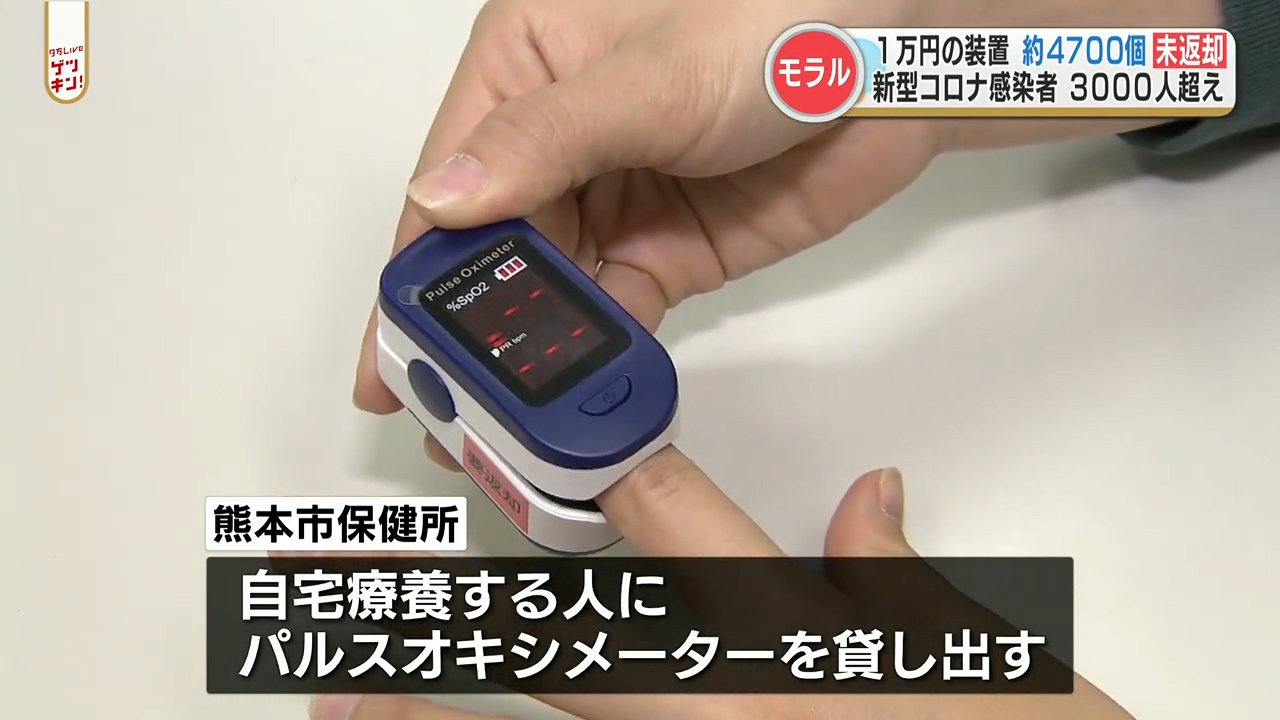 こうした中、熊本市保健所が自宅療養する人に貸し出した「パルスオキシメーター」が4764個返却されていないことが明らかになりました。