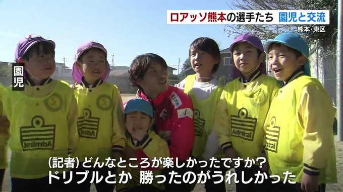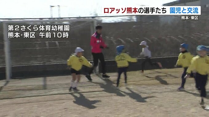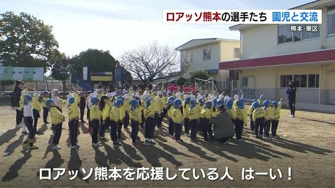 シーズンを戦い終えたサッカーのロアッソ熊本の選手たちが熊本市の園児たちと交流しました。