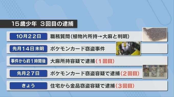 男子中学生は3回逮捕されています。