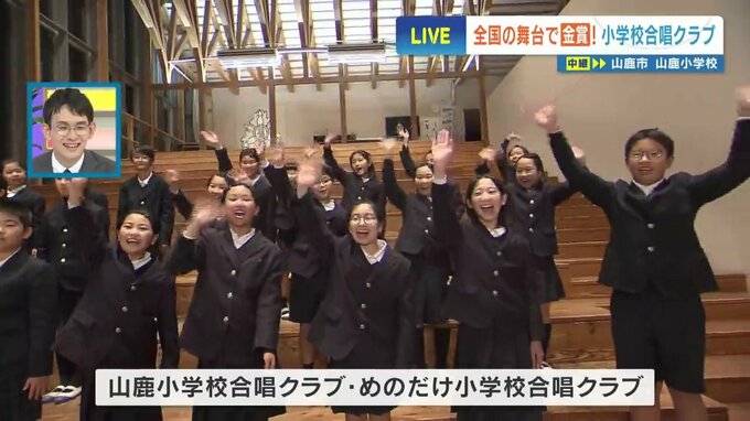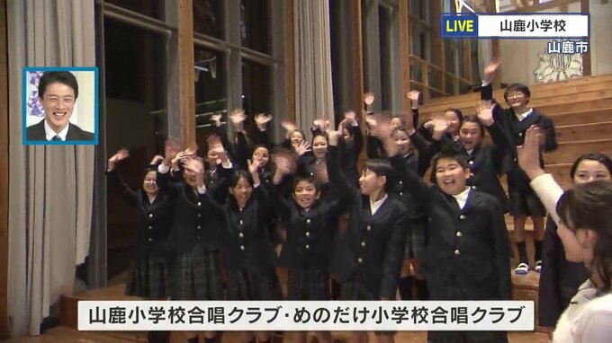 歌を披露したのは、「山鹿小学校」と、そこから3kmほど離れた「めのだけ小学校」の合同合唱クラブのメンバーたちです。
