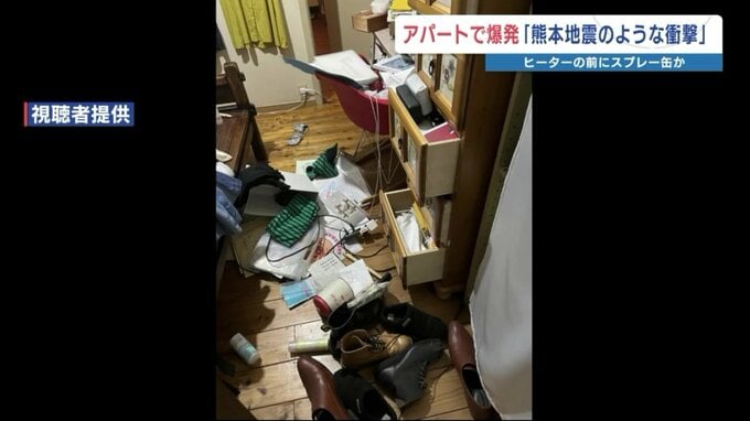 隣の部屋の住人は、RKK熊本放送の取材に「熊本地震のような衝撃だった」と話しました。爆発によって机やタンスが倒れたということです。