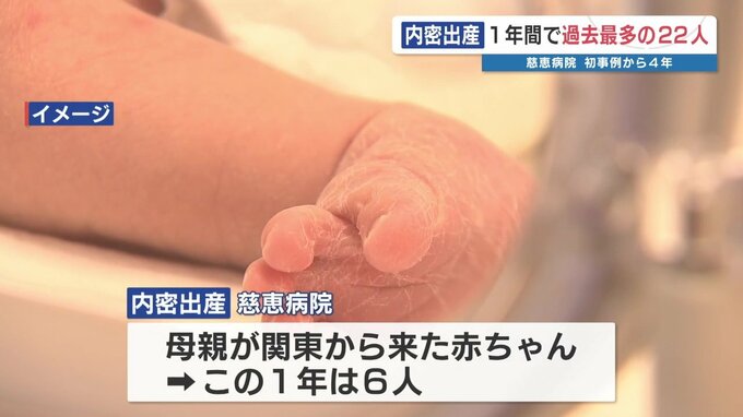 内密出産を巡っては、今年3月から東京の賛育会病院も制度を導入しましたが、母親が関東から来て生まれた赤ちゃんも、この1年で6人いるということです。