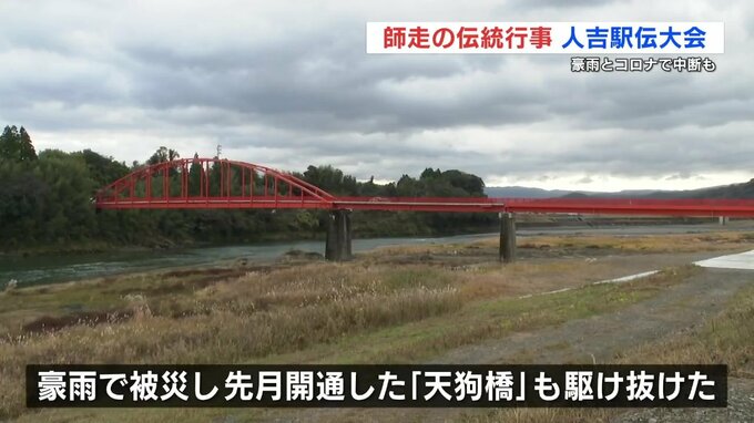 冷たい風が吹く中、ランナーたちは、豪雨で被災し11月15日に開通した天狗橋も元気よく駆け抜けました。