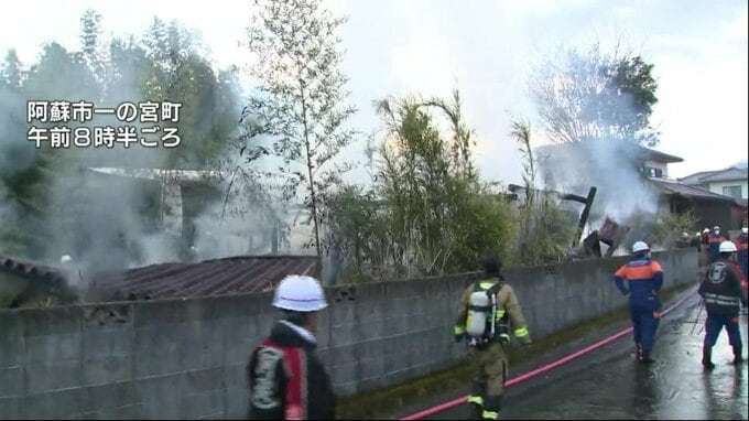 15日午前7時半ごろ、阿蘇市一の宮町で「建物が燃えている」と119番通報がありました。