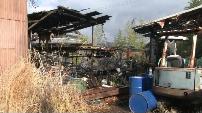 消防が駆け付け、火は約2時間後に消し止められましたが、倉庫3棟が全焼し、一部延焼した1棟とあわせて160㎡が焼けました。