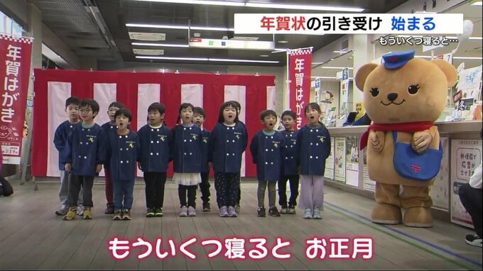 熊本市中央区にある熊本中央郵便局では、年賀状の引き受け開始にあわせて園児たちが歌を披露しました。