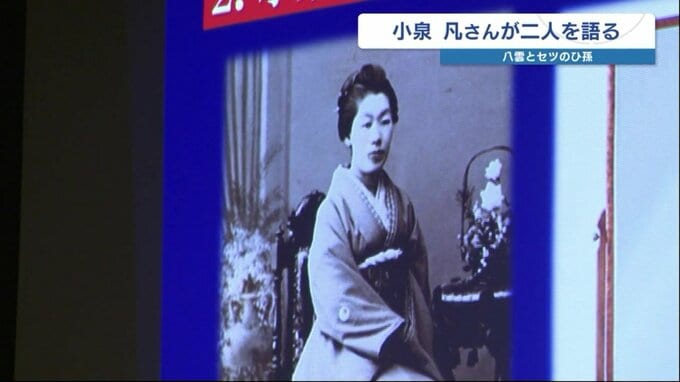 凡さんは、八雲の熊本を含む日本での暮らしを、写真や手紙など交えて紹介し、八雲の怪談作りには「妻セツの存在が欠かせなかった」と話しました。