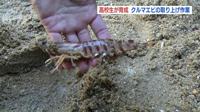 熊本県苓北町で高校生が育てたクルマエビの取り上げ作業が行われました。