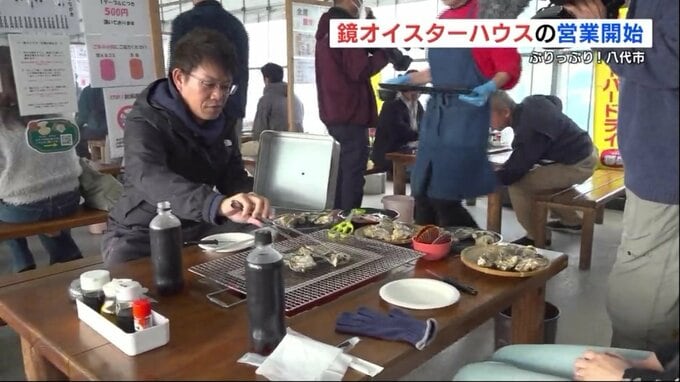 八代海で育てられたカキを炭火焼きで味わう牡蠣小屋「鏡オイスターハウス」の営業が、今年も熊本県八代市で始まりました。