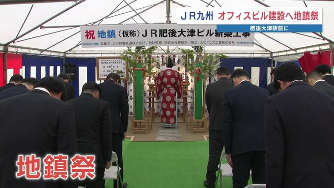 TSMCの熊本県菊陽町進出などに伴い、半導体関連企業などの進出が相次ぐ中、JR九州が肥後大津駅近くに建設するオフィスビルの地鎮祭が行われました。