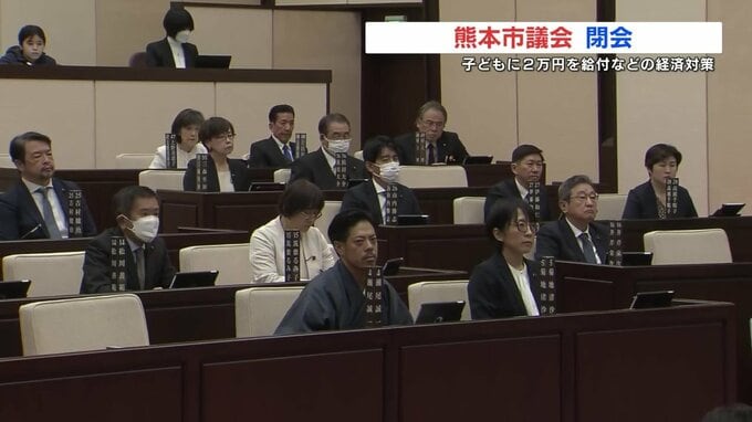 熊本市議会は、18歳までの子どもに2万円を給付するなどの経済対策を盛り込んだ総額 約150億円の一般会計補正予算案などを可決し閉会しました。