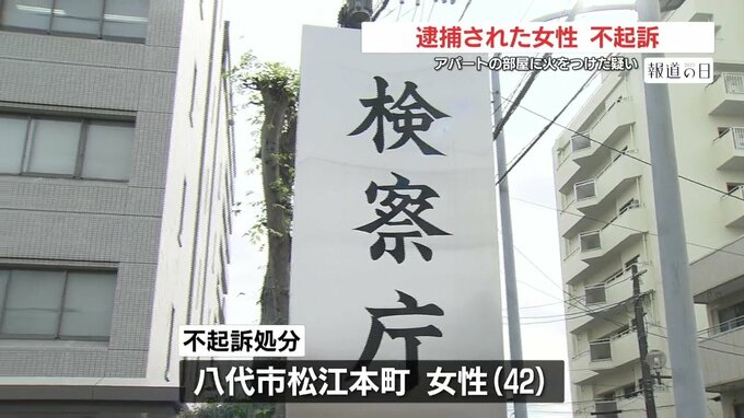 熊本県八代市 アパートの自室に火をつけた疑いで逮捕された女性 不起訴処分 2025年12月28日(日) 11:59 国内 今年8月、住んでいるアパートの部屋に火をつけたとして逮捕された女性について、熊本地方検察庁は起訴しないことを決めました。不起訴処分となったのは、熊本県八代市松江本町に住む無職の女性(42)です。女性は…
