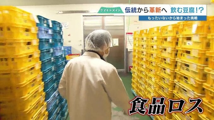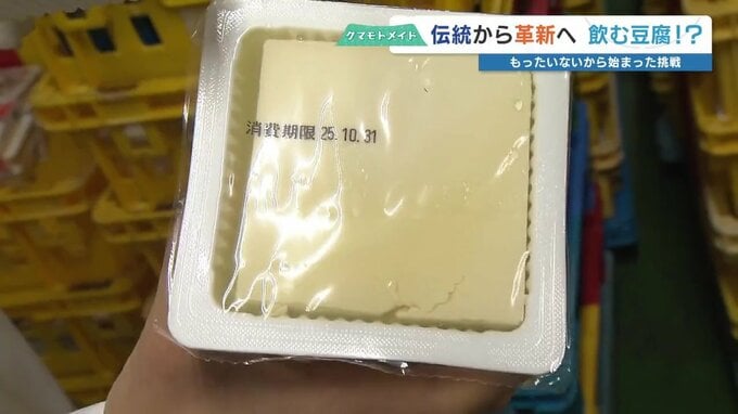 液体状にするため、規格外の絹ごし豆腐を有効活用。