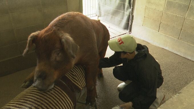 畜産科学科の3年生が取り組んでいたのが、ブタの人工授精に必要な精液の採取です。