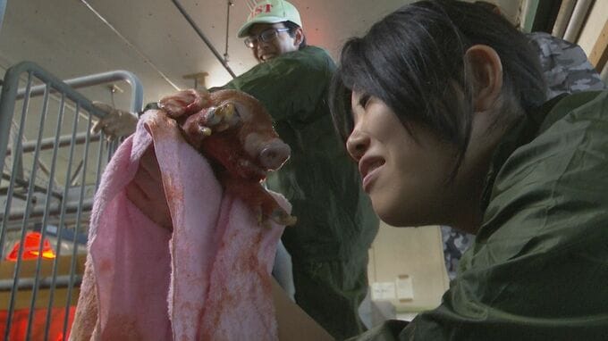 この日、3年生の山田未来斗さんが初めて人工授精させた母ブタの「ベリー」が出産を控えていました。