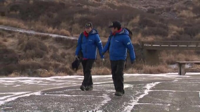 22日午前8時前、阿蘇山上に到着した田上啓介 航空事故調査官が調査前に報道陣の取材に応じました。