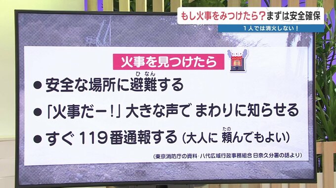数日前、小学校の避難訓練で「火事に遭遇したら、周囲に助けを求めるように」と習ったため、とっさに行動できたと振り返ります。