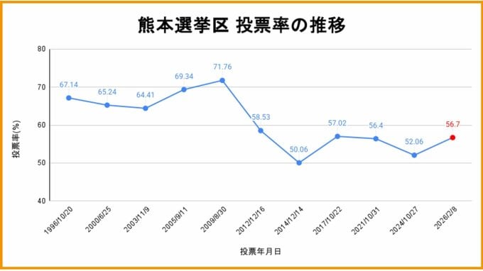 8日投開票の衆議院選挙で、熊本選挙区の投票率は56.70%でした。